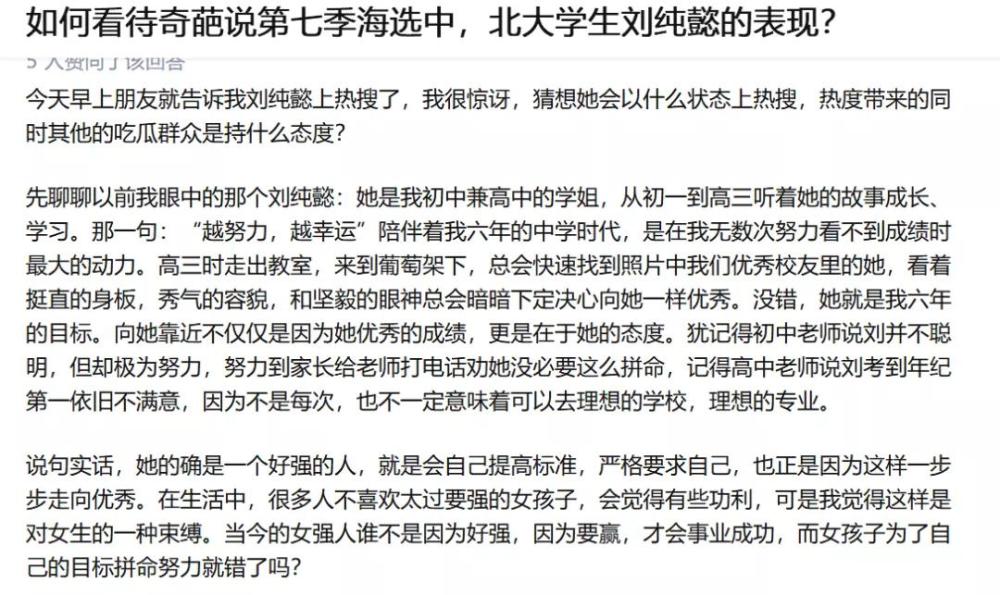 根据刘纯懿学弟学妹的说法,她不聪明,却超级努力,努力到家长给老师打电话,劝她不要那么拼命。